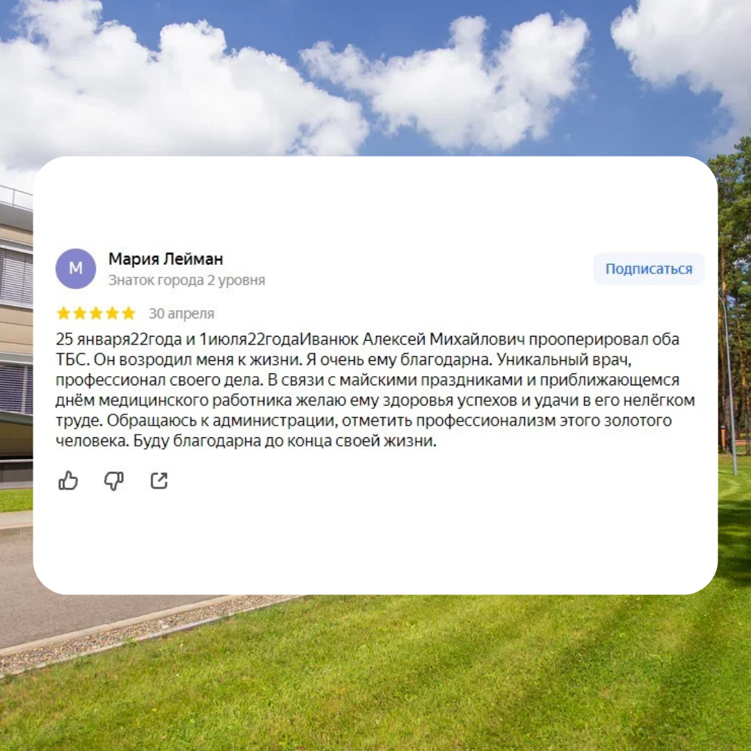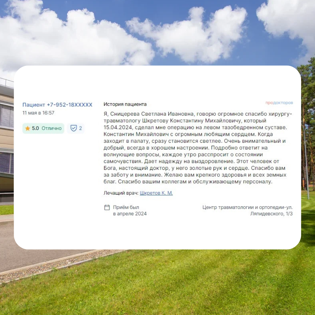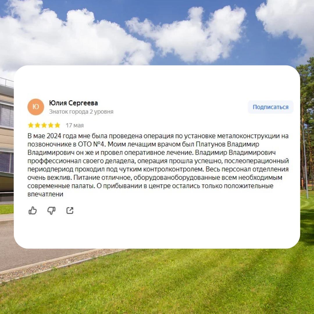 Мы всегда рады получать обратную связь от тех, кто проходил лечение в нашем центре и прилагаем все усилия, чтобы обеспечить высокий уровень медицинской помощи и качества реабилитации каждому.