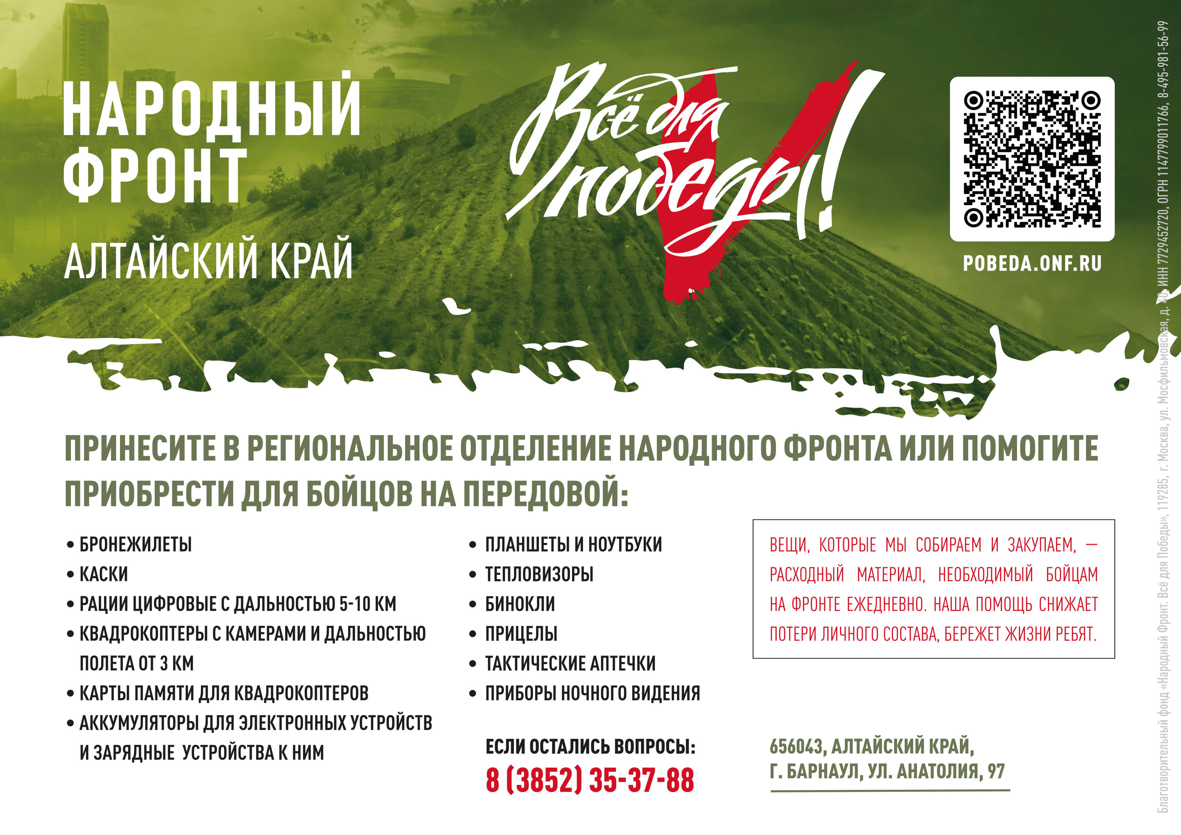 Подробнее о проекте «Все для победы» https://pobeda.onf.ru/ и региональный QR-код для пожертвований