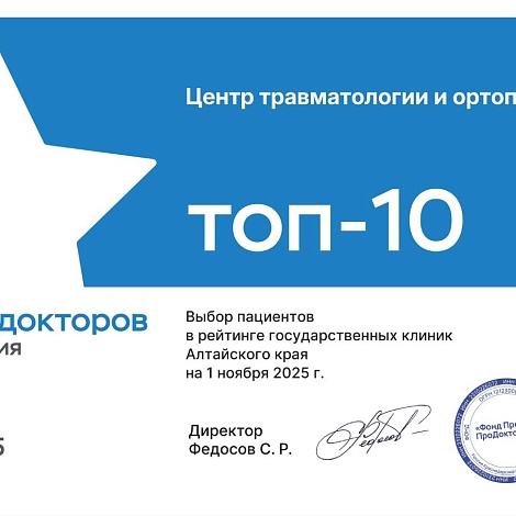 Главный врач, доктор медицинских наук, Заслуженный врач РФ, главный травматолог-ортопед СФО