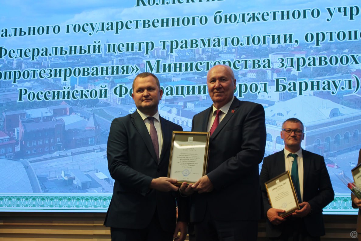 Коллектив Федерального центра травматологии, ортопедии и эндопротезирования Минздрава РФ г.Барнаула удостоен чести быть занесенным на Доску Почёта Центрального района Барнаула.