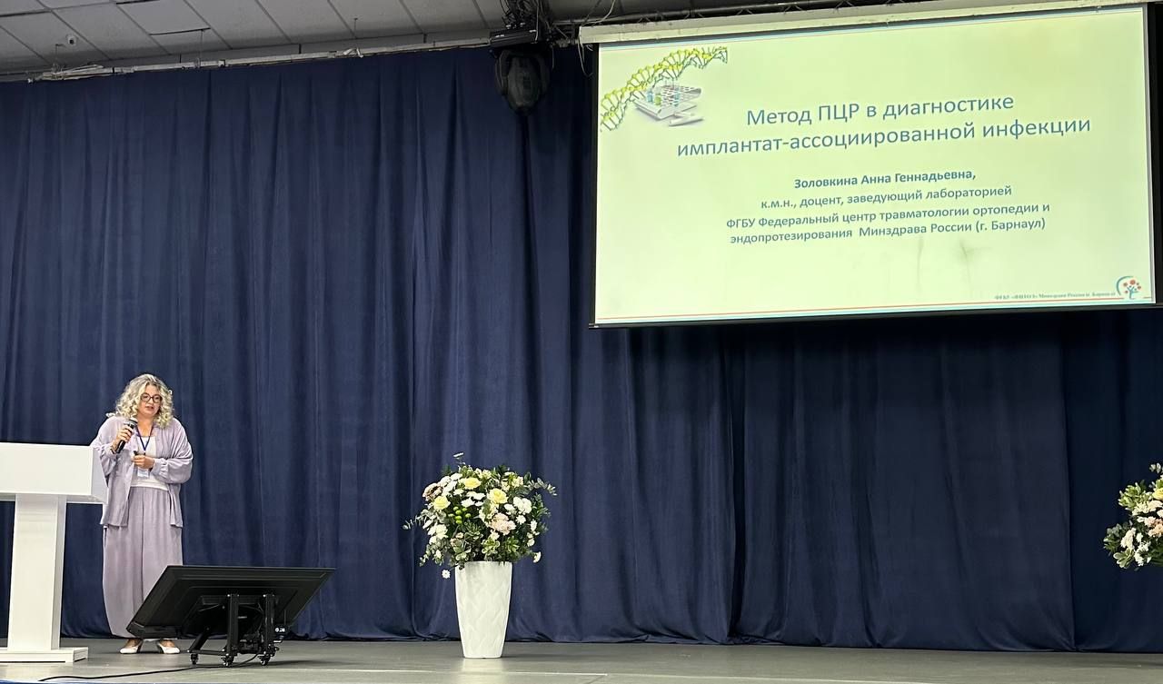 Анна Геннадьевна выступает с докладами «Метод ПЦР в диагностике имплант-ассоциированной инфекции» и «Правила взаимодействия персонала клинических подразделений и клинико-диагностических лабораторий: передача критических значений».