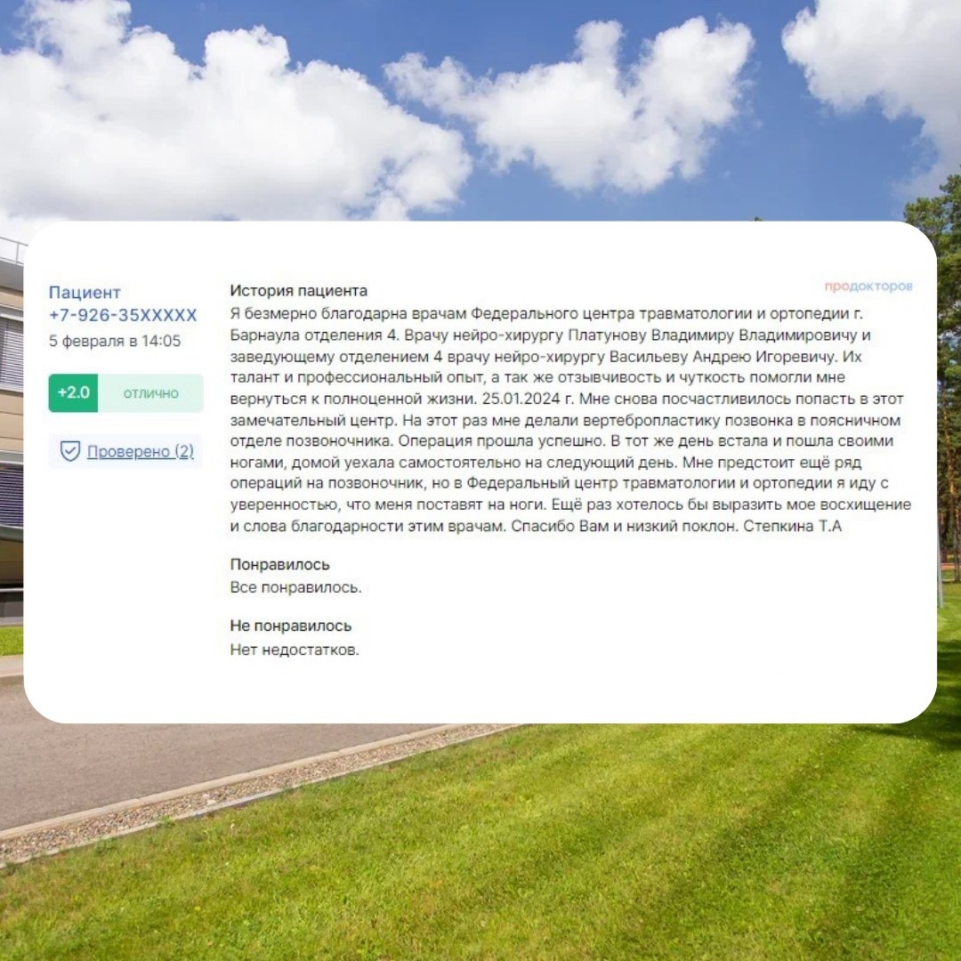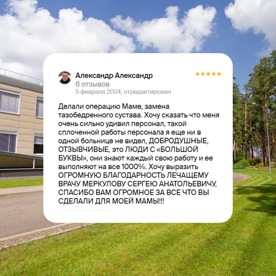 Благодарим вас за теплые отзывы! Мы всегда рады получать обратную связь от наших пациентов и делаем все возможное, чтобы сделать пребывание в Центре комфортным.