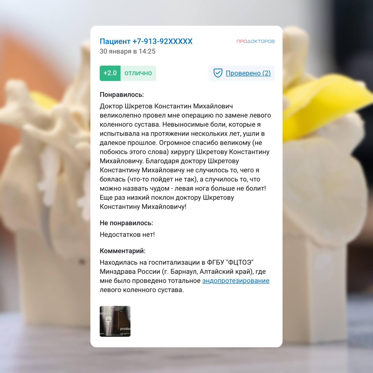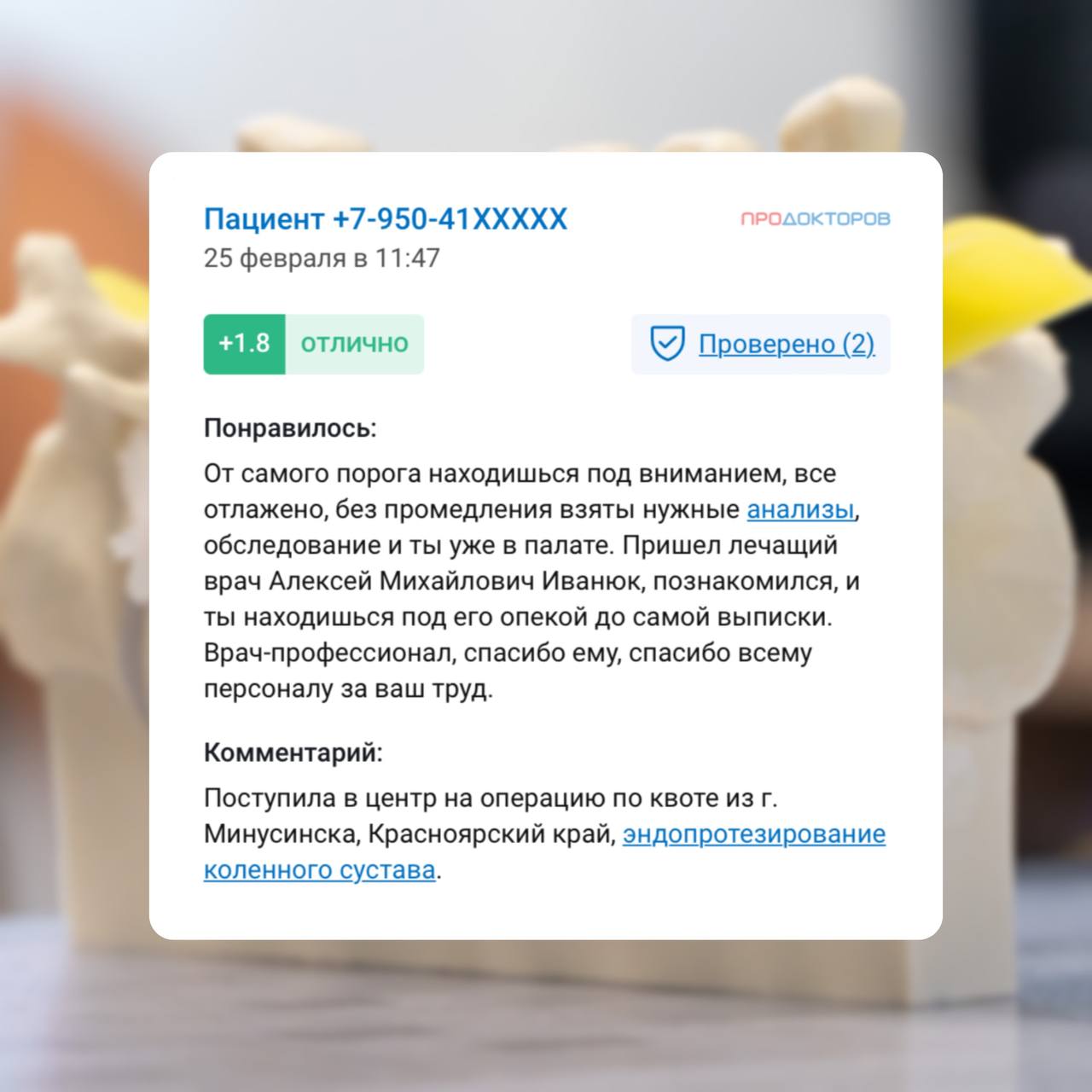 Признательны за высокую оценку и добрые слова в адрес докторов. Обратная связь от пациентов помогает улучшить качество оказываемой медицинской помощи