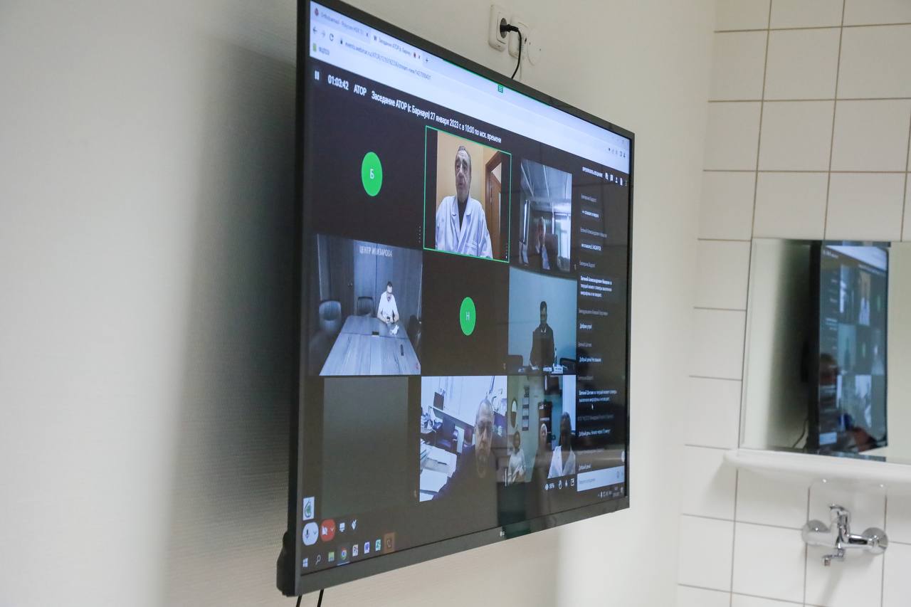 Помимо участников, находящихся в малом конференц-зале Центра, в формате онлайн-подключения присутствовали сотрудники около 150 лечебных учреждений. На повестке стояли вопросы, связанные со структурой АТОР, качеством оказания помощи в области травматологии-ортопедии, с обучением травматологов-ортопедов, импортозамещением.