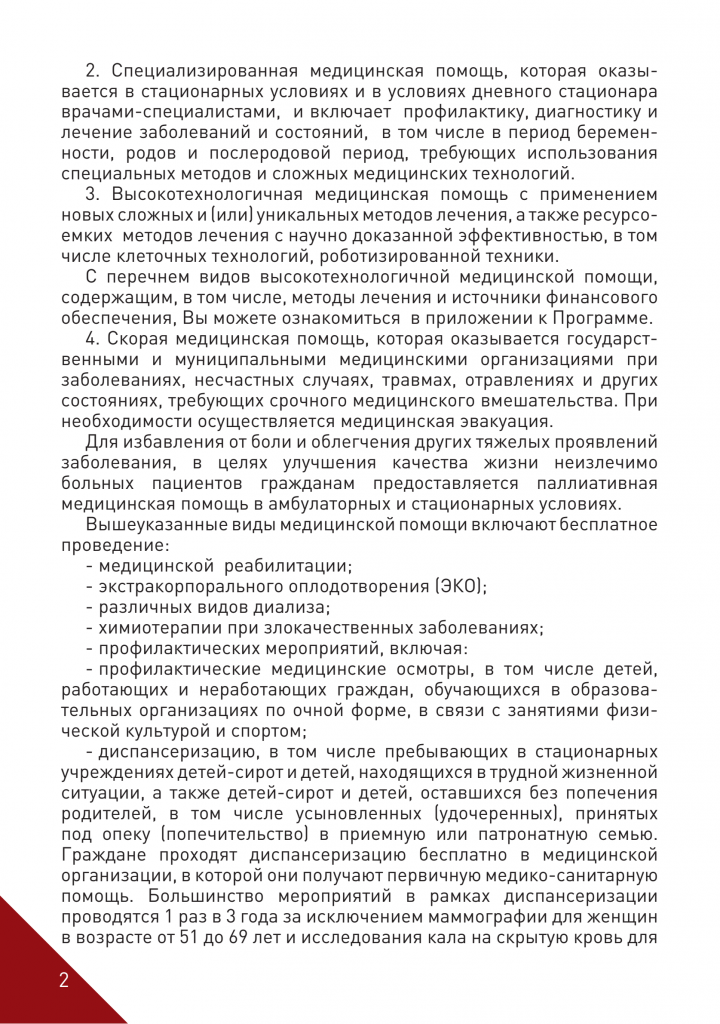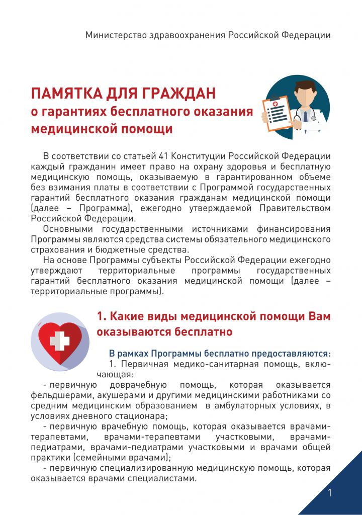 Памятка о гарантиях оказания бесплатной медицинской помощи